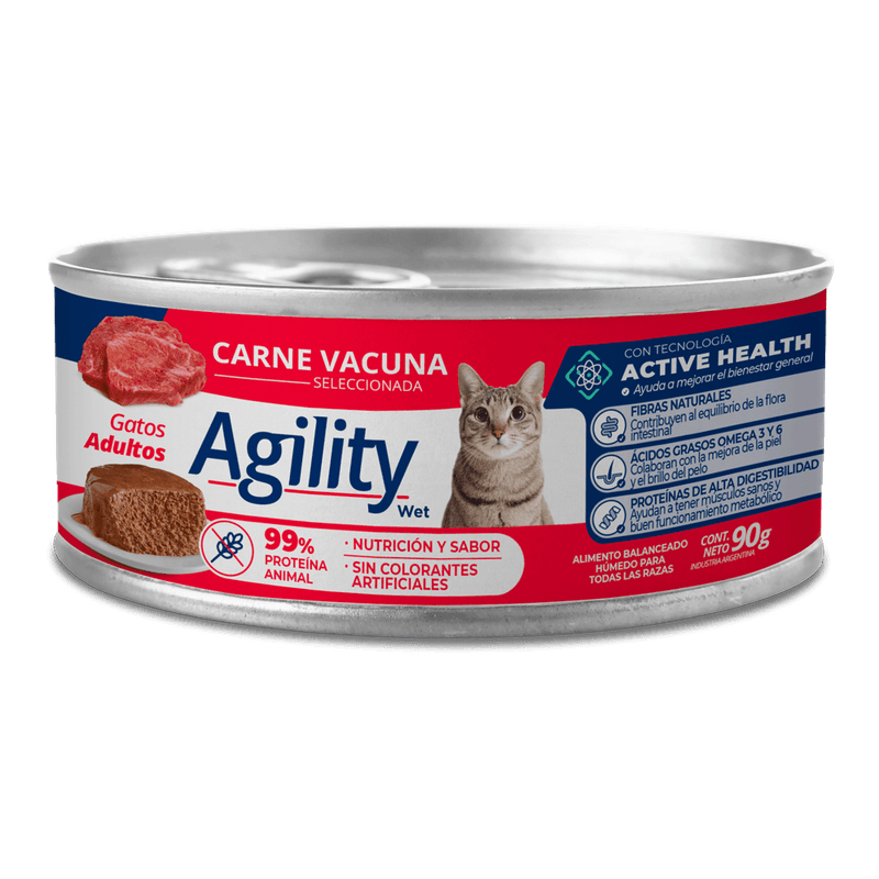 El Alimento Agility Carne Gato Adulto es una alternativa saludable y completa para la dieta del gato. Contiene L-Lisina que refuerza las defensas naturales del sistema inmunológico para un crecimiento saludable, Fibras Naturales que ayudan a eliminar las bolas de pelo y regular el tránsito intestinal, Proteínas de alta digestibilidad que ayudan a la formación de músculos fuertes y sanos. Ácidos grasos y Omega 3 y 6 que colaboran con la salud de la piel otorgándole brillo al pelaje