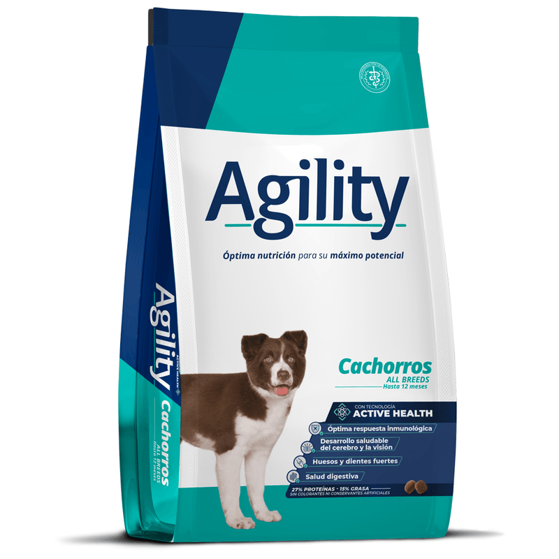 El Alimento Agility Perro Cachorro, fue diseñado para darle a tu cachorro todos los nutrientes clave para un desarrollo sano y fuerte en sus primeros 12 meses de vida. Su fórmula está basada en la tecnología Healthy Complex, que logra obtener una combinación de nutrientes y proteínas óptima, para darle a tu perro la mejor calidad de vida posible. A su vez, está indicado para hembras gestantes y lactantes, quienes necesitan un aporte mayor de estos macronutrientes.