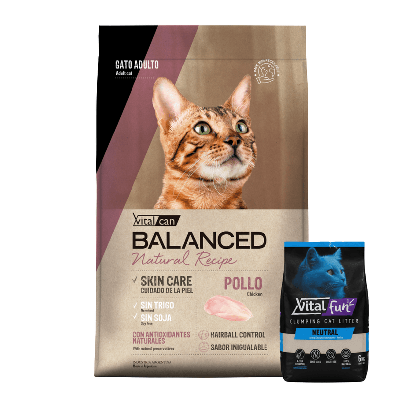 Balanced Natural Recipe está elaborado con carne argentina seleccionada y otros ingredientes naturales de alta calidad. Su fórmula monoproteica ayuda a mantener una masa muscular fuerte, favorece la salud digestiva, urinaria y articular, y cuida la piel y el pelaje gracias a su aporte de ácidos grasos esenciales. Beneficios: Proteína de calidad para músculos sanos Con prebióticos para una buena digestión Cuida el tracto urinario y las articulaciones Mejora la salud bucal Piel sana y pelaje brillante Una receta completa, sin colorantes ni conservantes artificiales, ideal para gatos adultos con necesidades nutricionales exigentes.