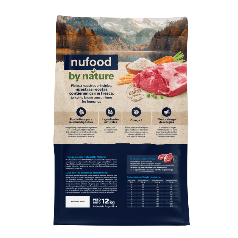 Descripción El Alimento Nufood By Nature Cordero para perros adultos fue desarrollado con un enfoque natural y saludable. Elaborado con ingredientes seleccionados, sin colorantes ni conservantes artificiales, está pensado para cuidar la salud y la felicidad de cada mascota. Su fórmula incluye arroz integral como fuente de energía sostenida y carne fresca de cordero, ideal para reducir el riesgo de alergias alimentarias.