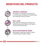 Alimento corrector dietario para perros adultos, destinado a ayudar a la función cardiaca deteriorada. Royal Canin Cardiac Canine contiene un nivel restringido de sodio que contribuye a facilitar el trabajo cardíaco y niveles adaptados de potasio y magnesio. Además, ayuda al buen funcionamiento del músculo cardíaco con su aporte de taurina y L-carnitina. Beneficios: Formulado con nutrientes, como taurina y L-carnitina, que contribuyen al mantenimiento de la salud del músculo cardíaco.EPA y DHA son ácidos grasos omega-3 de cadena larga que contribuyen a dar soporte a la función cardiovascular.Restringido en sodio para ayudar a reducir la sobrecarga del trabajo cardíaco Ingredientes: Harina de subproductos de pollo, arroz, harina de trigo, grasas animales (vacuna y/o pollo), maíz, gluten de maíz, huevo en polvo, hidrolizado de subproductos de pollo y/o cerdo, sales minerales, pulpa de remolacha, aceite de pescado, levadura de cerveza, aceite de soja, celulosa purificada, L-lisina, DL-metionina, vitaminas, fructo-oligosacáridos (FOS), taurina, extracto de té verde (rico en polifenoles), L-carnitina, oligoelementos quelados, extracto de rosa de la India (rico en luteína), oligoelementos.Vitaminas: Colina, vitamina E, vitamina C, niacina, pantotenato de calcio, vitamina B6, vitamina B2, vitamina A, vitamina B1, ácido fólico, biotina, vitamina B12, vitamina D3.Sales minerales: Calcita, citrato de potasio, sorbato de potasio, cloruro de potasio, óxido de magnesio. Oligoelementos: Sulfato de hierro, óxido de zinc, óxido de manganeso, sulfato de cobre, selenio orgánico, iodato de calcio.Oligoelementos quelados: Zinc, manganeso, cobre.Conservantes y antioxidantes: BHA, galato de propilo y ácido cítrico.