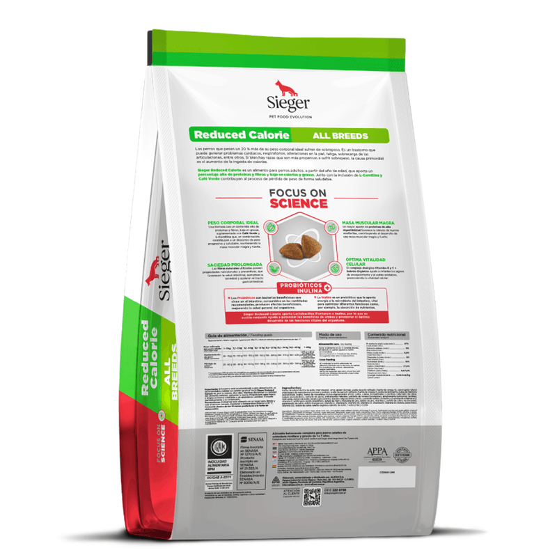 El Alimento Sieger Light está pensado para los perros con tendencia al sobrepeso o inactividad. Su fórmula aporta un porcentaje alto de proteínas y fibras y bajo en calorías y grasas para que los perros tengan un descenso de peso saludable. La inclusión de L-Carnitina, que facilita que las grasas puedan ser transformadas en energía y así eliminarse, favorece el proceso de pérdida de peso.
