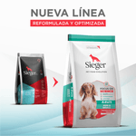 El Alimento Sieger para Perro Adulto Mordida Pequeña cubre las necesidades nutricionales de los perros pequeños desde los 12 meses hasta los 7 años de edad. Su fórmula contiene una combinación de nutrientes que colabora con el buen funcionamiento del sistema digestivo, favorece el sistema inmunológico, contribuye a la reducción de los efectos oxidativos a nivel celular y ayuda a mejorar la salud de la piel y el brillo del pelaje.