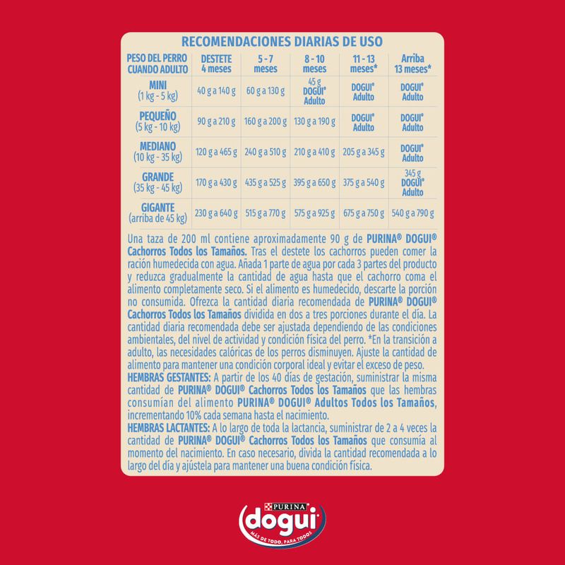 Dogui Cachorros  es un alimento económico para perros cachorros de todas las razas, que cubre con todas las necesidades nutricionales que pueda tener tu cachorro los primeros 12 meses. Es una fórmula diseñada para equilibrar un peso óptimo y aportar el contenido en proteínas, vitaminas y minerales necesarios para promover el correcto desarrollo y una vida saludable.