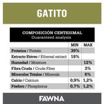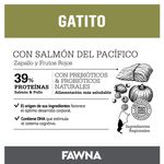 El Alimento Fawna Gato Kitten es una opción natural y de calidad superior, que le brinda a tu gato una alimentación saludable y completa en sus primeros meses de vida. Sus ingredientes, especialmente seleccionados en base a su origen, contribuyen a aportar los aminoácidos esenciales que tu mascota necesita para desarrollar una estructura corporal saludable. Se destaca por estar conformado en un 39% por proteínas de salmón y pollo de alta calidad, que aportan niveles óptimos de prebióticos y probióticos naturales, ayudando a incrementar la flora intestinal benéfica para las defensas naturales y el sistema inmunológico. Además, Contiene DHA, proveniente del aceite de salmón, que estimula el desarrollo del sistema cognitivo y la visión de tu gatito.