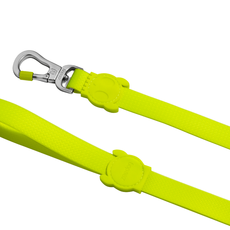 Esta correa está diseñada con una capa externa de goma NeoPro™ que protege el poliéster, lo que la hace extremadamente resistente a las condiciones climáticas y muy fácil de limpiar y mantener. El gancho cuenta con un sistema de rosca para máxima seguridad durante el paseo.