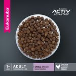 Eukanuba Puppy Small Breed es un alimento balanceado completo para cachorros entre 1 y 12 meses de edad y de razas pequeñas como Caniche, Yorkshire Terrier, Chihuahua, Daschund, Maltes y otras razas o perros mestizos que en su etapa adulta pesen menos de 10 kg. Las fórmulas para cachorro de Eukanuba, contienen niveles científicamente comprobados de DHA ara apoyar el óptimo desarrollo neurológico del cachorro y maximizar su capacidad de aprendizaje durante el entrenamiento. Contribuye a una óptima digestión, desarrollo y mantenimiento de músculos magros, articulaciones y huesos fuertes. Beneficios: Chicken Protein - Fuente de protei´na de origen animal con un alto porcentje de aminoácidos esenciales altamente digestibles, para desarrollar y mantener mu´sculos magros. Fórmula con DHA - contribuye nutricionalmente a facilitar el proceso de aprendizaje y entrenamiento del cachorro.Crecimiento del cachorro - contiene un correcto balance de minerales para promover huesos fuertes. Ingredientes: Harina de subproductos de pollo, harina de maíz, trigo integral molido, grasa de pollo, arroz de cervecería, pulpa de remolacha seca, producto de huevo seco, sabor natural a cerdo y/o pollo, aceite de pescado, Levadura de cerveza seca, harina de pescado, fosfato dicálcico, sal, vitaminas (suplemento de vitamina E, ácido ascórbico, beta caroteno, acetato de vitamina A, pantotenato de calcio, biotina, suplemento de vitamina B12, mononitrato de tiamina (fuente de vitamina B1), niacina, suplemento de riboflavina (fuente de vitamina B2), inositol, hidrocloruro de piridoxina (fuente de vitamina B6), suplemento de vitamina D3, ácido fólico), cloruro de potasio, minerales (sulfato ferroso, óxido de zinc, sulfato de manganeso, sulfato de cobre, óxido manganoso, iodato de calcio, carbonato de cobalto), cloruro de colina, antioxidante (BHA y BHT), DL-metionina, fructooligosacáridos, luteína.