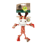 Estos juguetes están elaborados con fibras recicladas certificadas por el Global Recycled Standard (GRS), lo que garantiza su origen responsable y su impacto positivo en el medio ambiente. Son perfectos para morder, tirar, sacudir o simplemente abrazar, combinando sustentabilidad con durabilidad.
