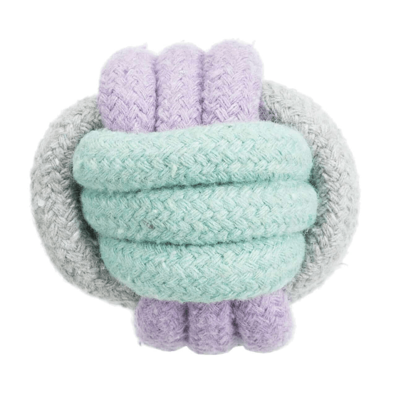 Confeccionada en algodón natural y cuerda resistente, esta pelota es suave para las encías de tu perro y, al mismo tiempo, lo suficientemente duradera para soportar sus juegos.