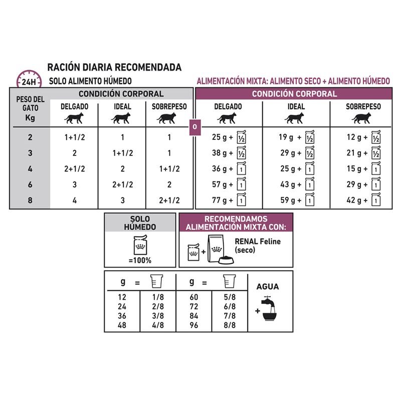 Pouch Royal Canin para Gato Renal, es un alimento húmedo para gatos adultos, formulado para ayudar a disolver cálculos de estruvita y contribuir a reducir su recurrencia a través de sus propiedades acidificantes de la orina.