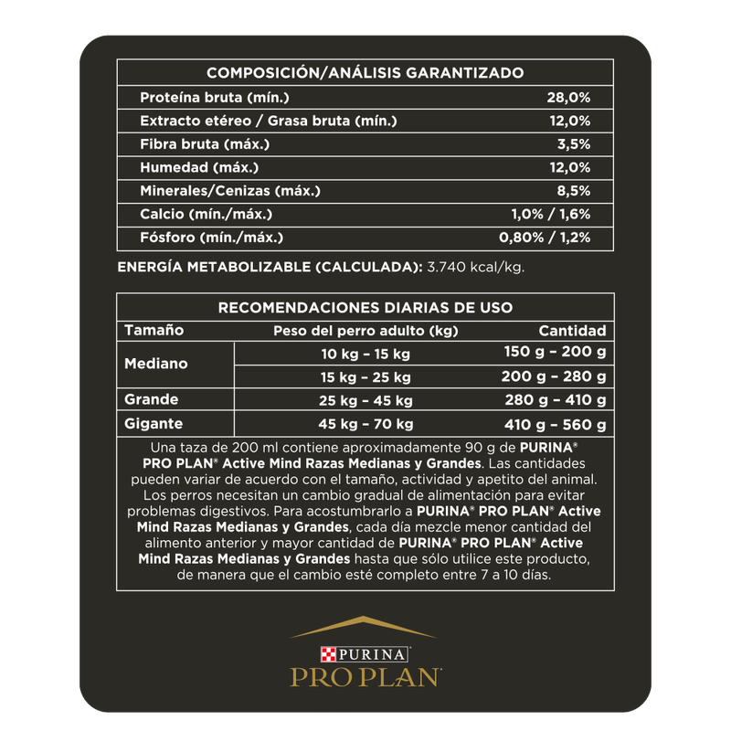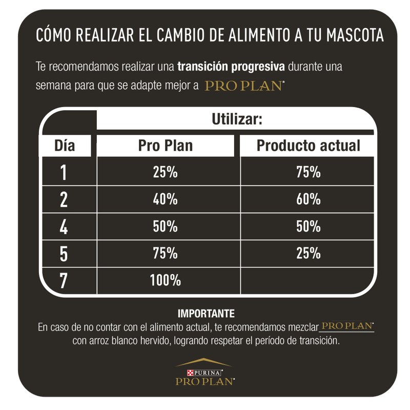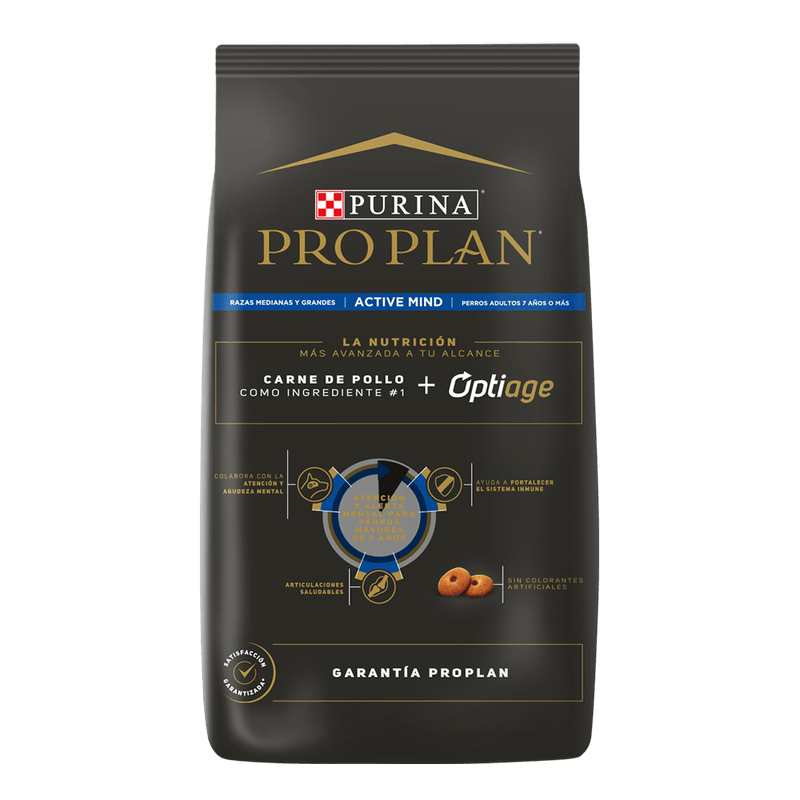 Purina Pro Plan provee nutrición de avanzada para proteger a los perros mayores de 7 años, manteniéndolos sanos y activos. A su vez, refuerza el sistema inmunológico, mantiene saludables las articulaciones y refuerza la atención mental. Formulado con fuentes naturales de glucosamina, que ayudan a mantener las articulaciones sanas y una movilidad óptima. Contiene una proporción equilibrada de proteína y grasa para mantener la masa muscular magra, una combinación de antioxidantes naturales y vitaminas E y C.