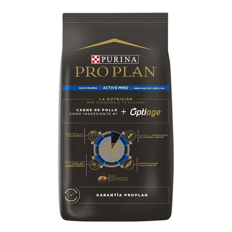 Purina Pro Plan provee nutrición de avanzada para proteger a los perros mayores de 7 años, manteniéndolos sanos y activos. Formulado con fuentes naturales de glucosamina, que ayudan a mantener las articulaciones sanas y una movilidad óptima. Contiene una proporción equilibrada de proteína y grasa para mantener la masa muscular magra, una combinación de antioxidantes naturales y vitaminas E y C.